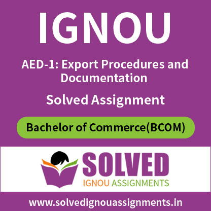 IGNOU AED 1 solved assignment 2020-21 (Export Procedures and Documentation) is valid for July 2020 and January 2021 session. AED-1 is one of the Elective Courses in Commerce of IGNOU Bachelor Degree Programme (BDP). The assignment solution is available in English and Hindi medium.